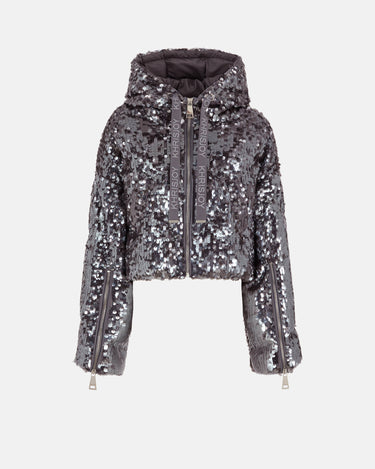 CROP ICONIC MILANO IN MACRO SEQUINS SILVER