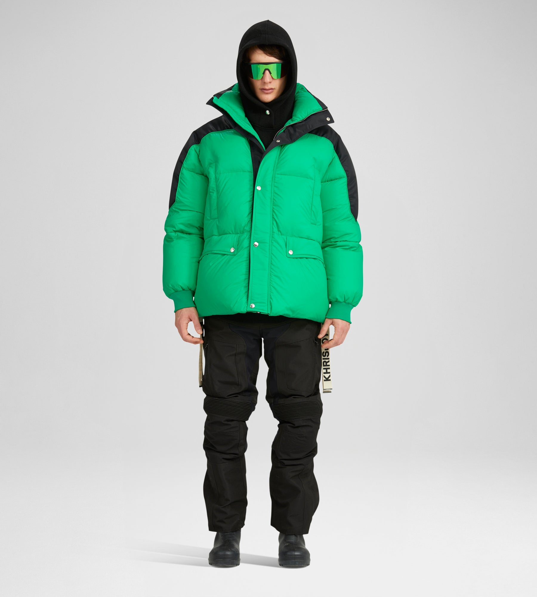 Prepare yourself to become captain of the style with this iconic Khrisjoy Puff Field Jacket. The tech fabric outer with the epaulets-inspired detail and the white duck down and feather padding are your comrades in this campaign. Add style the funnel neck, long sleeves with ribbed cuffs, and a front snap button fastening. Don’t forget the two welt chest pockets, two front buttoned flap pockets, the tech fabric lining, and the straight hem with signature maxi branded drawstrings, they are a must! Made in Italy.